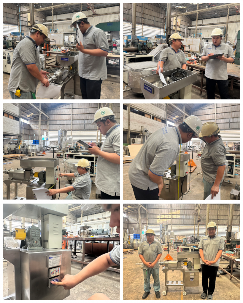 บริษัทฯ ได้ดำเนินการตรวจสอบคุณภาพ (QC) เครื่องคั้นแยกกากแบบเกลียวอัดสเตนเลส รุ่น SPJ-100T ก่อนทำการส่งมอบ เพื่อให้มั่นใจว่าเครื่องจักรมีความพร้อมในการใช้งาน ได้มาตรฐาน และตรงต่อความต้องการของลูกค้าอย่างสูงสุดค่ะ