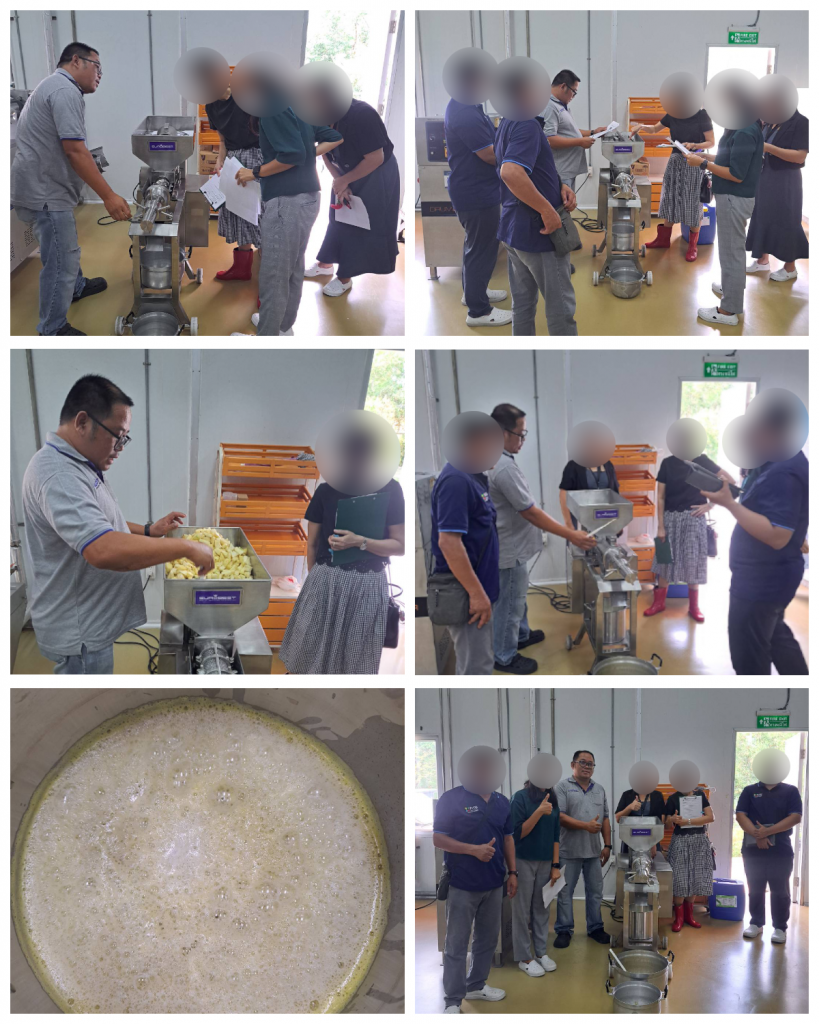 งานทดลองวัตถุดิบด้วย เครื่องคั้นแยกกากแบบเกลียวอัดสเตนเลส รุ่น SPJ-100T (SCREW PRESS JUICER MODEL SPJ-100T)