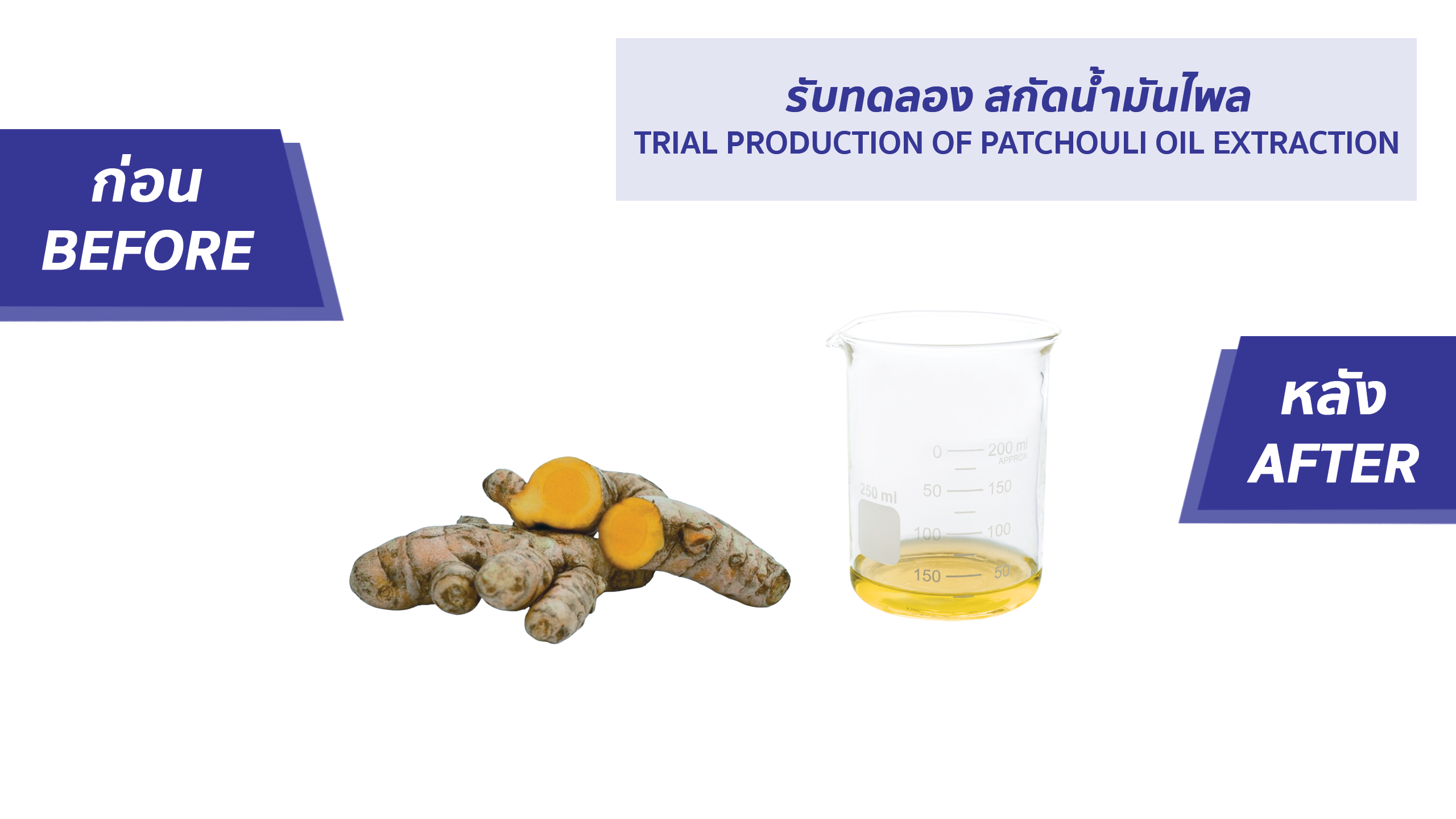 รับทดลอง สกัดน้ำมันไพล (TRIAL PRODUCTION OF PATCHOULI OIL EXTRACTION)